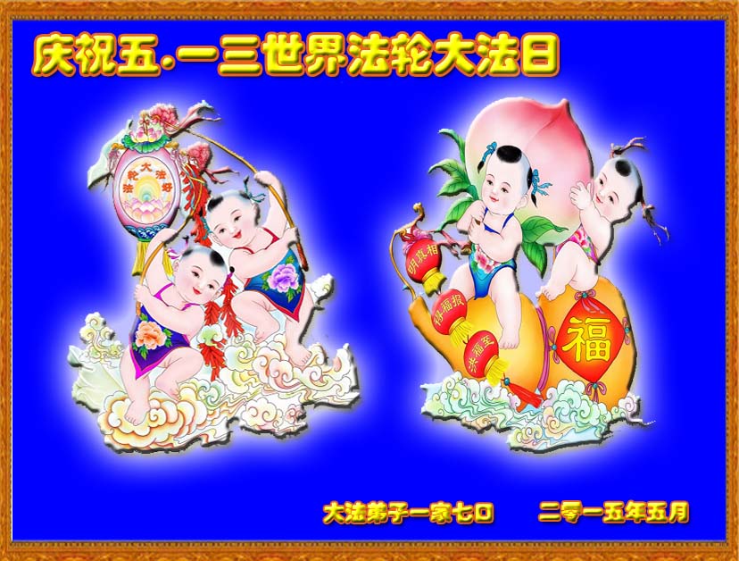 河北省石家庄建明小区三口之家庆祝5.13世界法轮大法日!恭祝伟大慈悲的恩师生日快乐!