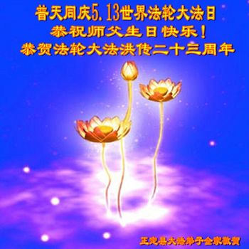 河北省石家庄市正定县大法弟子恭贺5.13世界法轮大法日!恭祝师父生日快乐!