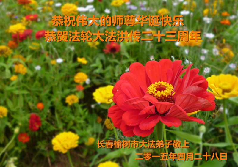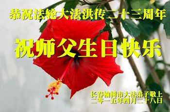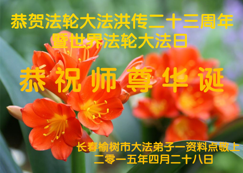 祝贺法轮大法洪传二十三周年!庆祝法轮大法日! 做好三件事,随师把家还。 吉林省长春一学法组大法弟子恭祝师尊生日快乐!普天同庆5.13世界法轮大法日!