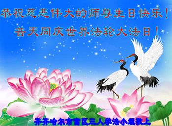 黑龙江省齐齐哈尔大法弟子祝师尊生日快乐!庆贺世界法轮大法日!