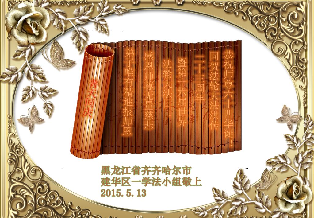 黑龙江省齐齐哈尔市建华区一学法小组大法弟子恭祝师尊华诞!同贺法轮大法洪传二十三周年暨第十六届世界法轮大法日!
