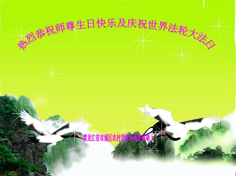 黑龙江省哈尔滨市双城市区农村学法小组全体大法弟子热烈恭祝师尊生日快乐暨庆祝世界法轮大法日!