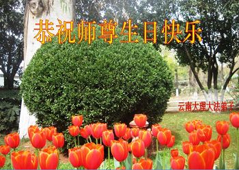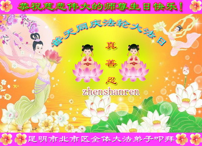 昆明市全体大法弟子恭祝慈悲伟大的师尊生日快乐!并衷心庆贺世界法轮大法二十三周年!