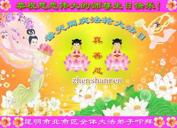 云南省昆明市全体大法弟子恭祝师尊生日快乐!恭祝大法洪传二十三周年!