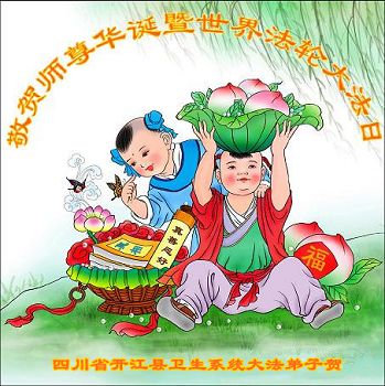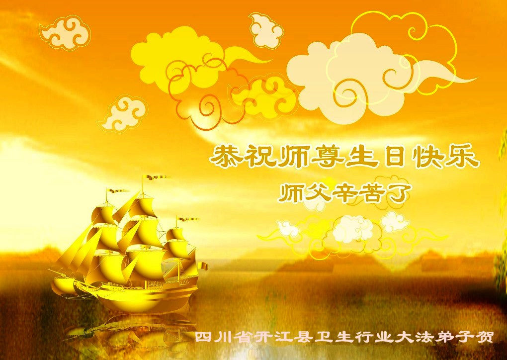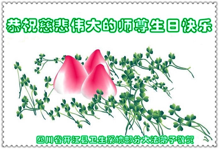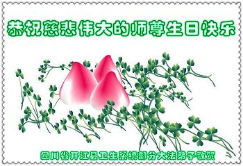 【明慧网二零一五年五月十一日】 四川省达州市开江县卫生行业大法弟子恭祝师尊生日快乐!