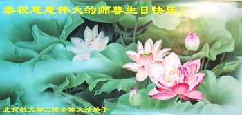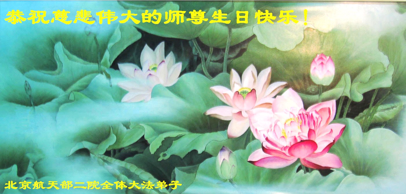 北京航天部二院全体大法弟子恭祝慈悲伟大的师尊生日快乐!