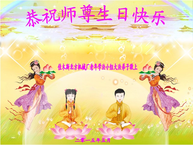 黑龙江省佳木斯北方机械厂老年学法小组大法弟子恭祝师尊生日快乐!