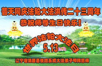 辽宁省抚顺市清原县铁路系统大法弟子恭祝伟大慈悲的师尊生日快乐!普天同庆法轮大法洪传二十三周年!