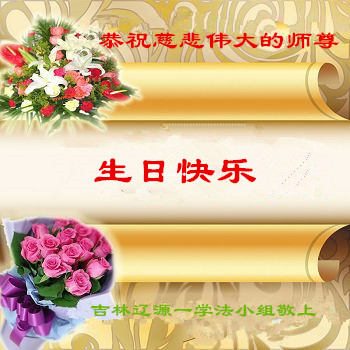 吉林省辽源一学法小组大法弟子恭祝慈悲伟大的师尊生日快乐!