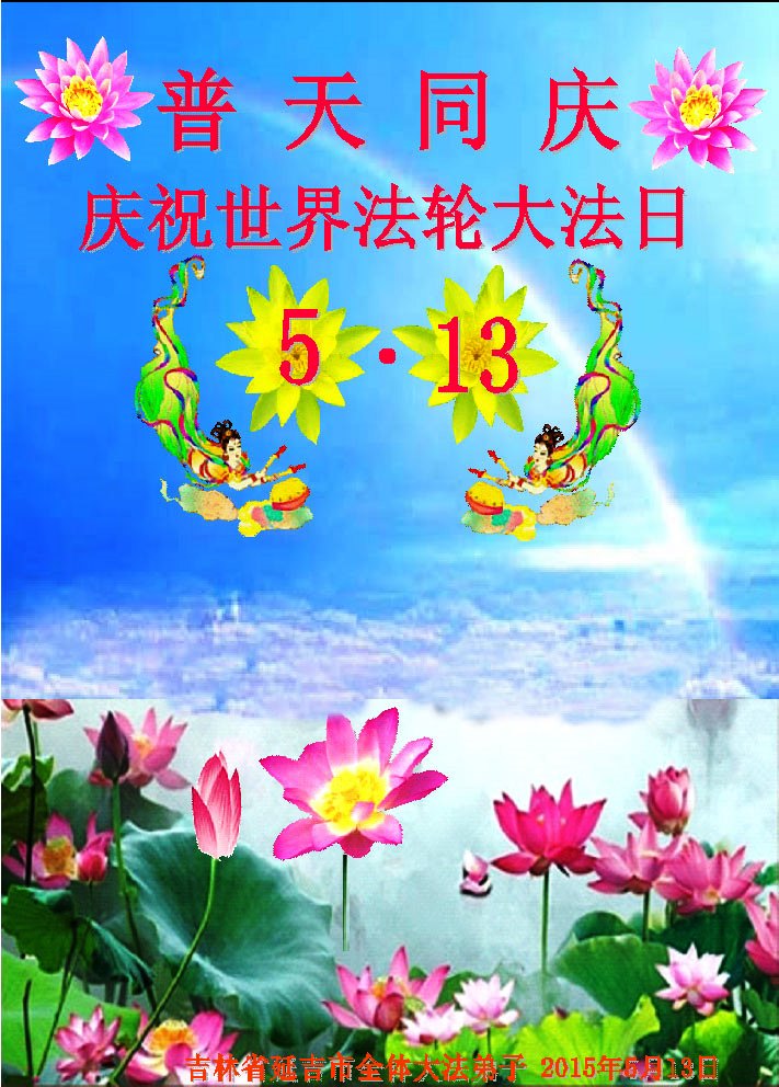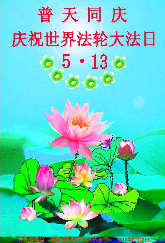 【明慧网二零一五年五月十一日】 吉林省辽源市大法弟子恭祝慈悲伟大的师尊生日快乐!普天同庆5.13世界法轮大法日!