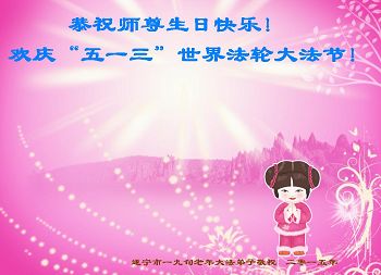 我是98年得法的弟子,17年的风风雨雨中,在师尊呵护下,正法修炼的路上走到今天。在普天同庆法轮大法日暨师尊生日的时候,倍感师恩,心情格外激动,弟子一定勇猛精進,做好三件事,直到最后圆满! 四川遂宁一资料点全体大法弟子恭祝慈悲伟大的师尊生日快乐!