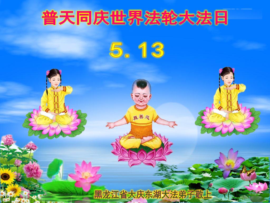 庆祝世界5.13法轮大法日! 大庆让胡路区大法弟子敬上 黑龙江省大庆一大法弟子恭祝师尊生日快乐!