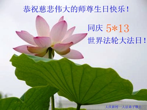 同庆513世界法轮大法日,在这普天同庆的日子里,大庆市创业城全体大法弟子恭祝慈悲、伟大的师尊华诞快乐! 大庆市创业城全体大法弟子 黑龙江省大庆三厂全体大法弟子恭祝师尊生日快乐!