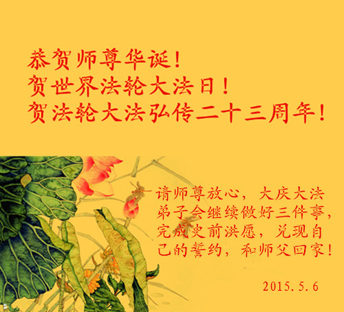 【明慧网二零一五年五月十一日】 黑龙江省大庆广厦、富安、长青大法弟子恭祝师尊生日快乐!