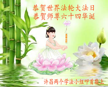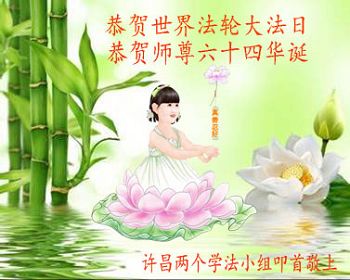 河南省许昌两个学法小组弟子恭贺恩师六十四华诞!恭贺世界法轮大法日!