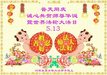 河南大法弟子敬上 祝贺法轮大法洪传二十三周年和世界法轮大法日!