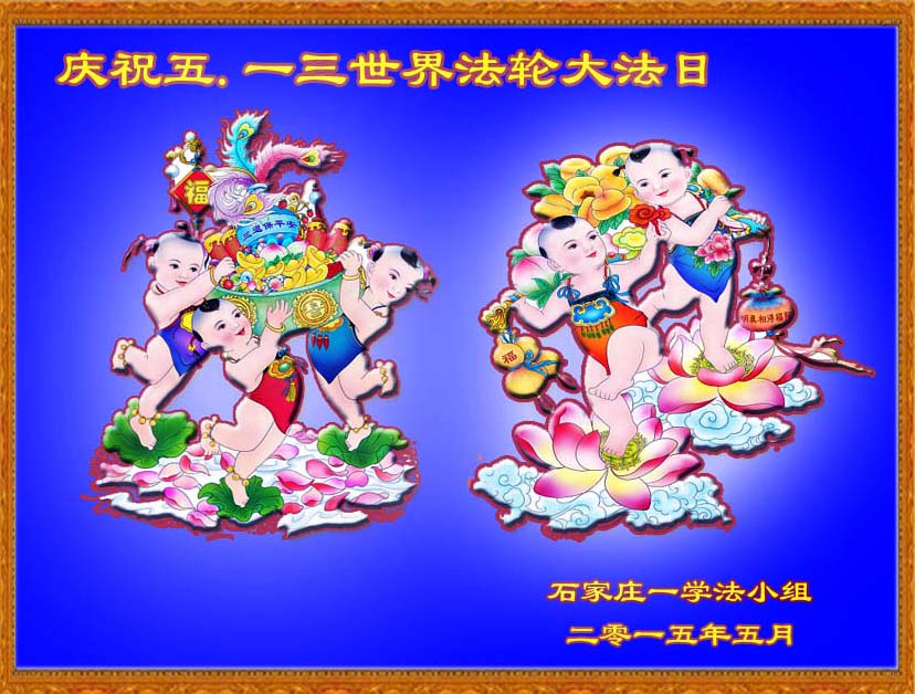 普天同庆5.13世界法轮大法日!恭祝伟大的师尊生日快乐! 石家庄纺织系统大法弟子 2015年5月5日 河北省石家庄建明小区一学法小组大法弟子恭祝慈悲伟大的师尊生日快乐!