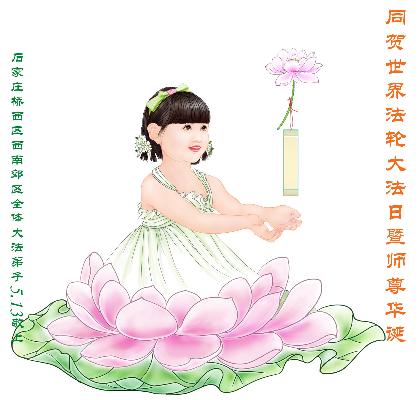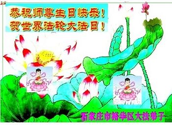 河北省石家庄市桥西区南郊区全体大法弟子恭祝慈悲伟大的师尊华诞!恭贺世界法轮大法日!