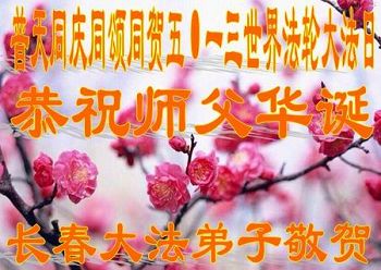 吉林省长春大法弟子恭祝师父生日快乐!庆祝法轮大法洪传世界二十三周年!
