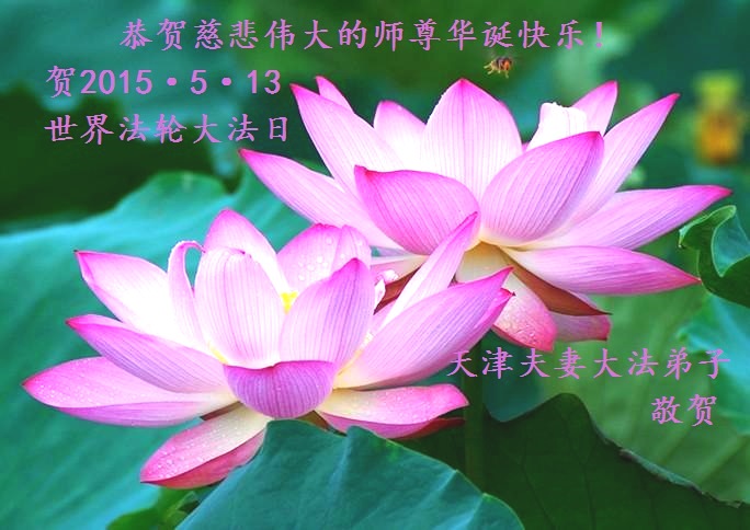 庆祝大法弘扬二十三周年,庆祝五一三世界法轮大法日,恭祝师父生日快乐!辽宁丹东大法弟子 天津市河东区夫妻大法弟子恭贺师父华诞快乐!