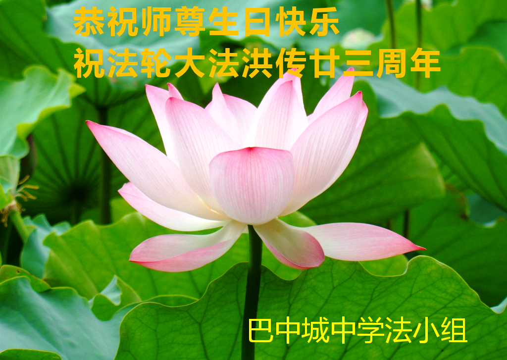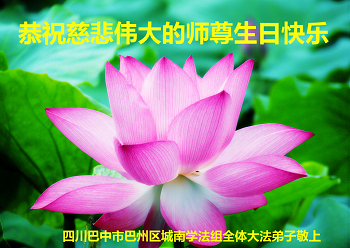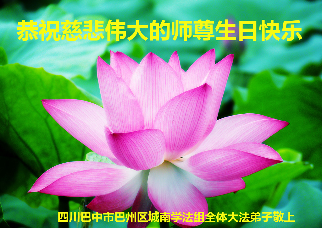 四川巴中全体大法弟子恭祝慈悲伟大的师尊生日快乐!
