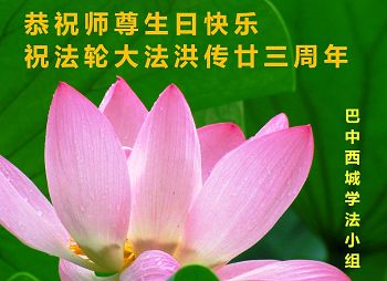 庆祝法轮大法洪传二十三周年!恭祝师尊生日快乐! 师尊您好:我们学法小组的同修,每天下午在一起学法,学完法之后,再做证实法和救人的事。过程中遇到问题首先向内找,求师父帮助,多次都化险为夷。同修互相鼓励,坚定的信师信法,共同精進,共同提高。谢谢师尊的慈悲救度。 合十 跪拜师尊 一外地来四川省成都市龙泉驿区居住的女大法弟子恭祝伟大师尊生日快乐!