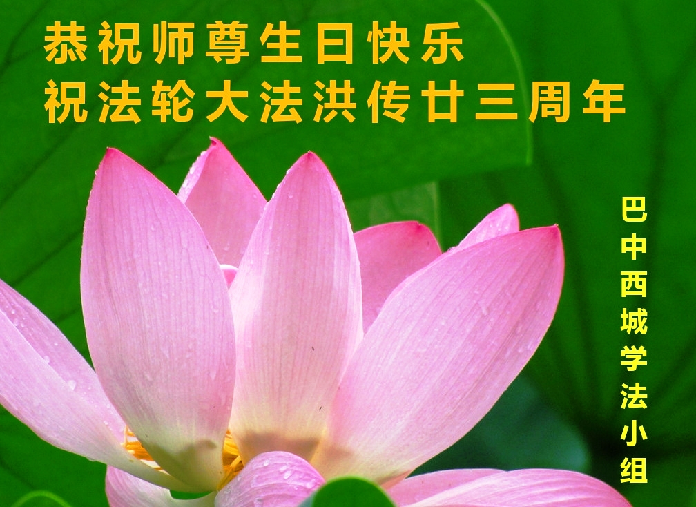 四川省成都市新都区一学法点全体大法弟子恭祝慈悲伟大的师尊生日快乐! 恭贺师尊传法二十三周年! 山东淄博大法弟子普天同庆法轮大法日!恭祝慈悲伟大的师尊生日快乐!