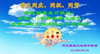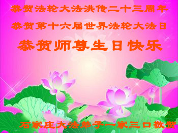 恭贺“5.13”世界法轮大法日!恭贺法轮大法洪传二十三周年! 石家庄大法弟子恭贺慈悲伟大的师尊生日快乐!