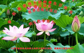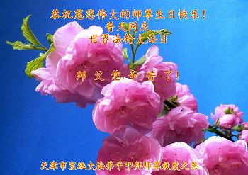 暨法轮大法洪传二十三周年! 慈悲伟大的师尊的师父您好!您辛苦了!恭祝慈悲伟大的师尊生日快乐! 弟子们都非常想念您师尊!回首弟子们在修炼中所走的每一步,无不凝聚着慈悲伟大师尊为弟子巨大的承受和无量的心血,是生命永远都无法回报的;在这普天同庆世界法轮大法日的大喜之际,借明慧一角:祝贺师父传法二十三周年!送去弟子们对师尊的一份感恩和祝福! 弟子们深知正法的日子是极其有限的!是师尊用无量的慈悲和巨大的承受延续来的!但是弟子所做的有很多是不尽师意的,深感愧对师尊!今后弟子要把每一天当作最后一天来珍惜,抓紧时间多学法,以法为师,排除一切干扰,真正的在法上提高,扎实做好大法弟子该做的,兑现誓约;同时不忘向内找,共同配合,形成强大的整体,不断精進实修,圆容师尊所要的,尽量让师尊多一份欣慰!少一些操劳!弟子们在此叩拜师尊!再道一声:慈悲伟大的师尊您辛苦了!弟子们谢谢师尊!合十! 山东大法弟子敬上 北京海淀区大法弟子恭祝师尊生日快乐!