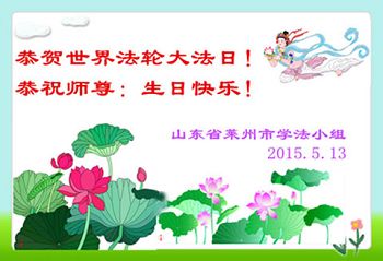 庆祝五月十三日到来的大法洪传二十三周年纪念日暨第十六届“世界法轮大法日”。 山东省淄博市全体大法弟子恭祝师尊生日快乐!