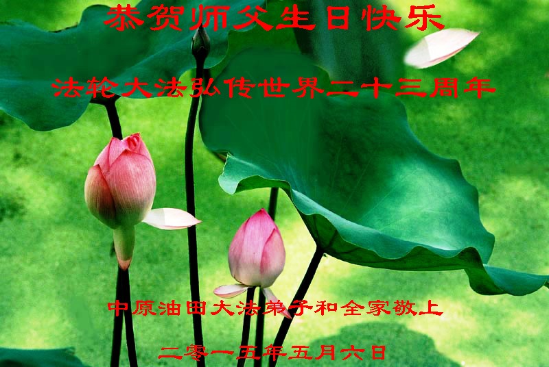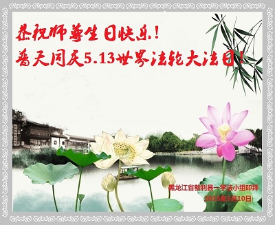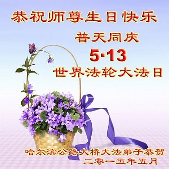 庆祝5.13世界法轮大法日!法轮大法洪传世界二十三周年!恩师生日快乐! 长春市红旗街大法弟子 2015.05.07 黑龙江省一大法弟子恭祝师尊生日快乐!