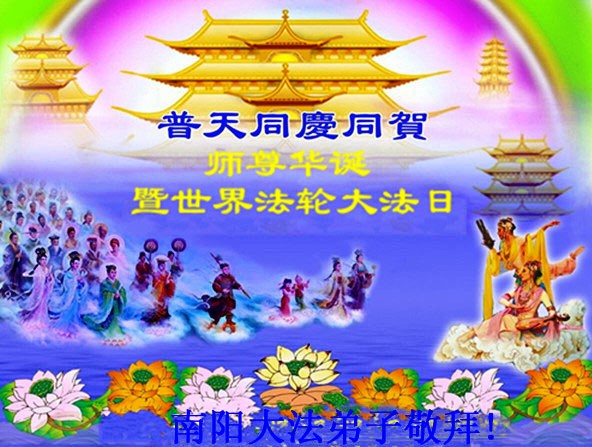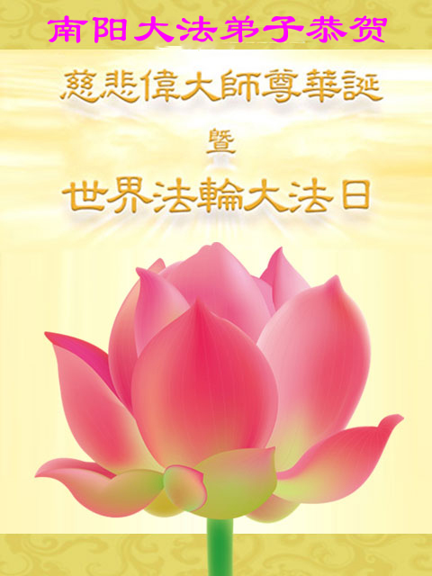河南省南阳各界大法弟子恭祝慈悲伟大的师尊生日快乐暨世界法轮大法洪传二十三周年!