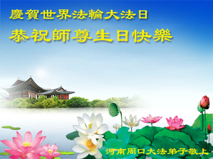 同庆法轮大法洪传二十三周年! 河南周口大法弟子庆贺世界法轮大法日!恭祝师尊生日快乐!