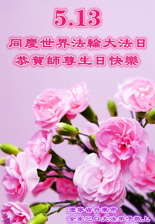 辽宁丹东一家三口大法弟子恭贺师父生日快乐!同庆世界法轮大法日!