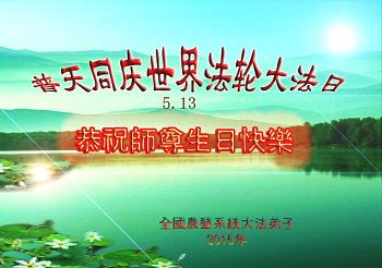 全国农垦系统大法弟子普天同庆世界法轮大法日!恭祝师尊生日快乐!
