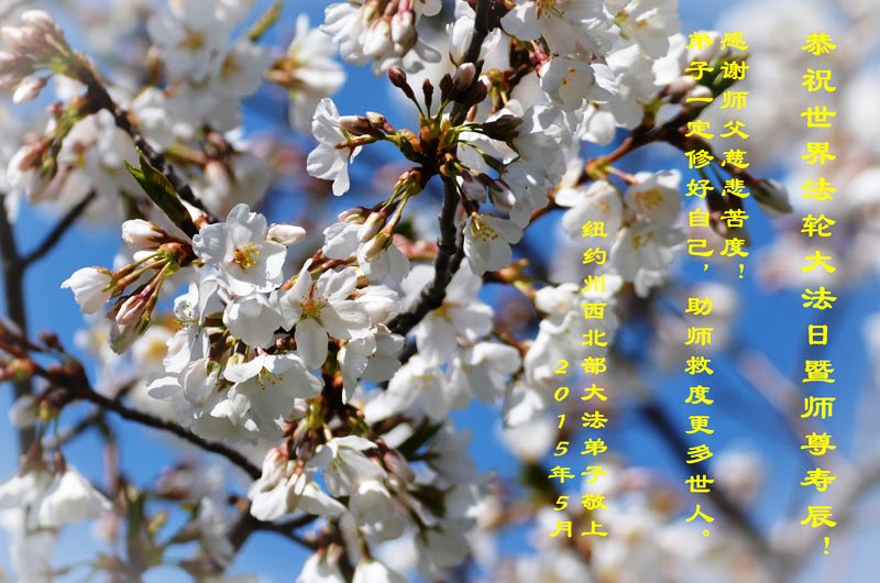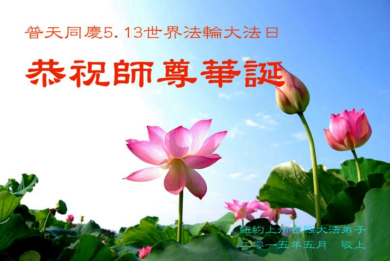 【明慧网二零一五年五月十二日】 美国纽约大法弟子恭贺师尊六十四华诞!恭祝大法洪传二十三周年!