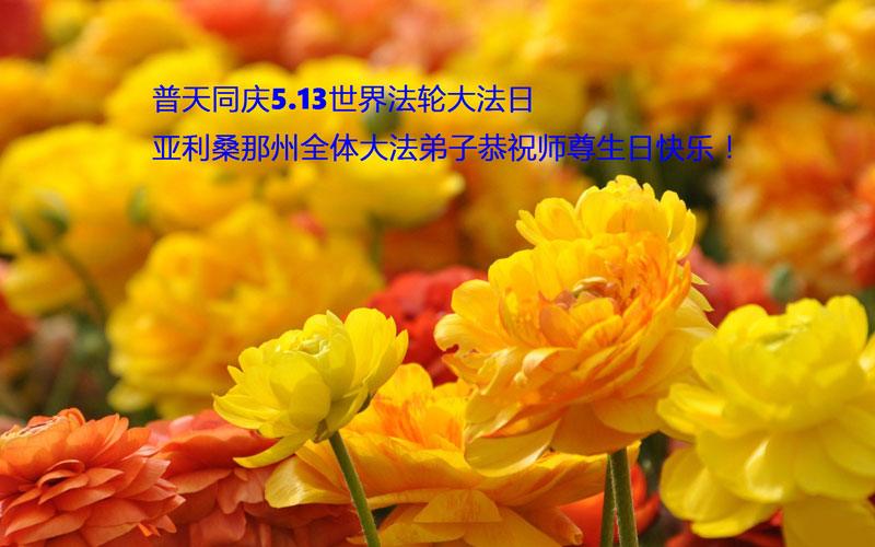 无限感恩师尊慈悲苦度!师尊好!谢谢师尊! 亚利桑那州全体大法弟子恭祝5.13世界法轮大法日!恭祝师尊生日快乐!