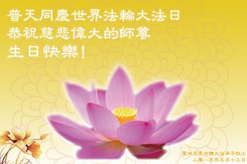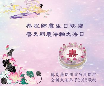 美国德克萨斯州全体大法弟子恭祝师父生日快乐,恭贺法轮大法洪传二十三周年