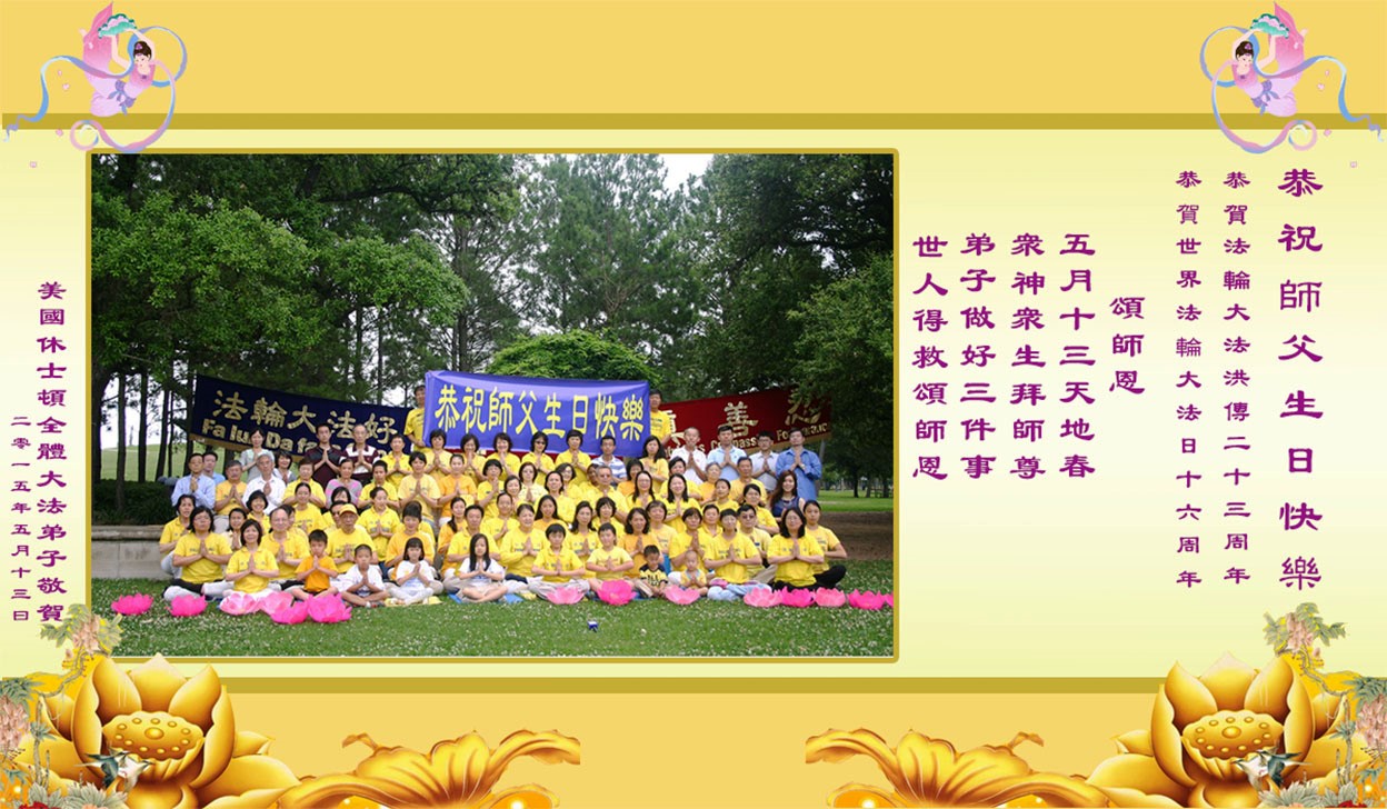 美国休士顿全体大法弟子恭祝师父生日快乐, 恭贺法轮大法洪传二十三周年!