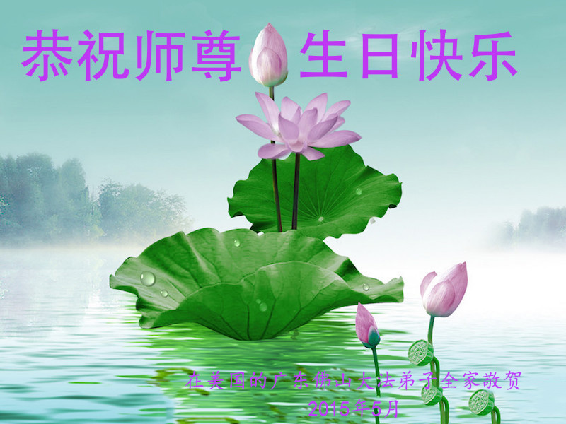 在美国的广东佛山大法弟子全家恭祝师尊生日快乐!
