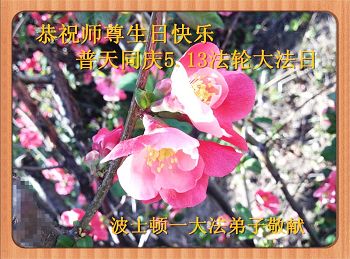 波士顿一大法弟子恭祝师尊生日快乐!普天同庆5.13法轮大法日!