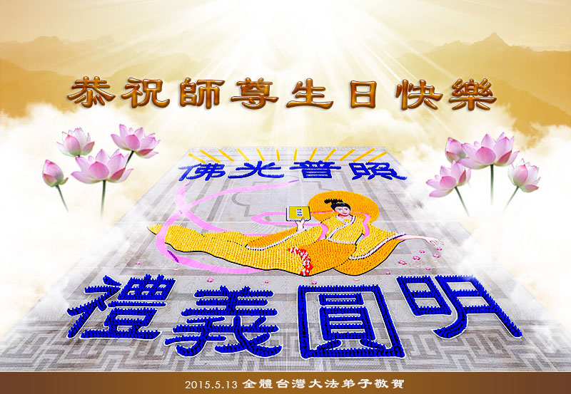 【明慧网二零一五年五月十二日】 台湾北区大法弟子恭祝师尊生日快乐!庆祝世界法轮大法日!