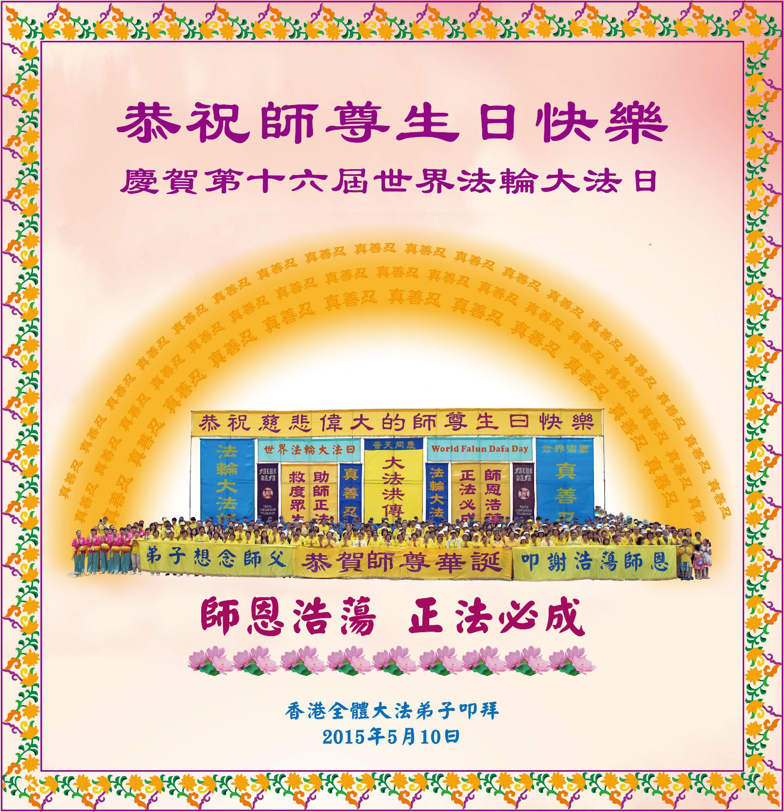 全体香港大法弟子恭祝师尊生日快乐!庆祝大法洪传二十三周年!