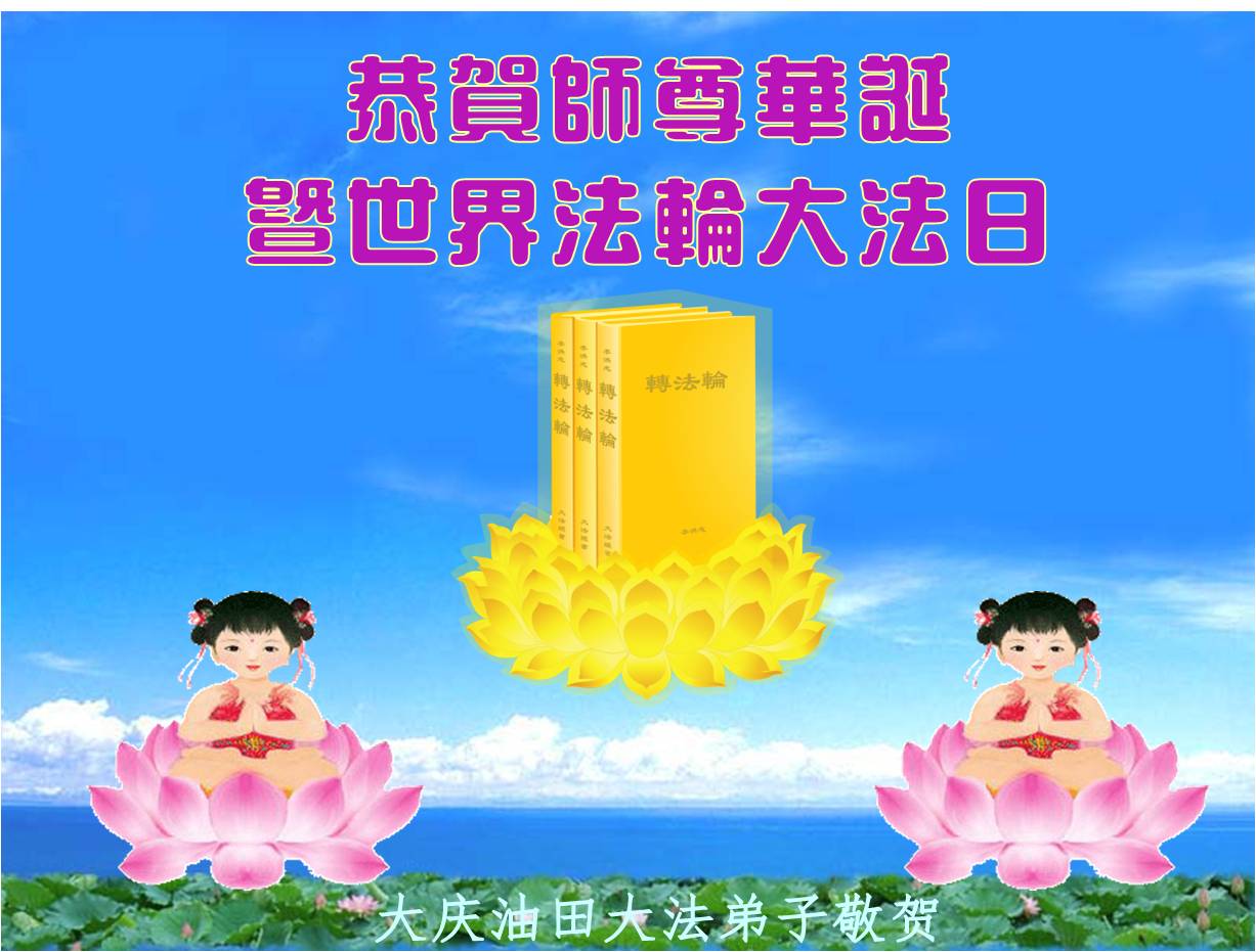 黑龙江省大庆油田大法弟子恭祝师尊生日快乐!贺5.13世界法轮大法洪传二十三周年!