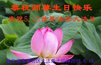 黑龙江省哈尔滨市香坊区大法弟子恭祝师尊生日快乐!庆祝世界法轮大法日!