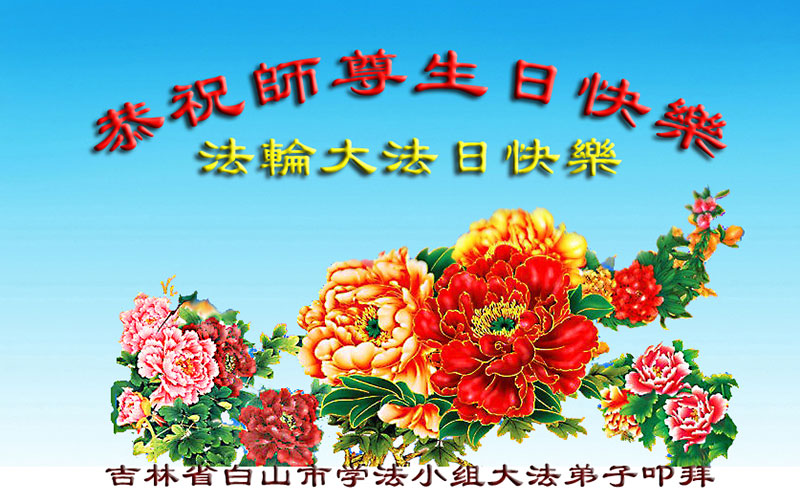吉林省白山市学法小组大法弟子恭祝师尊生日快乐!法轮大法日快乐!
