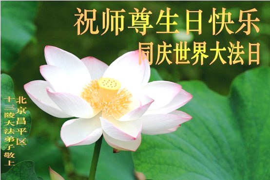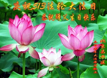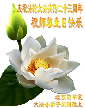 北京昌平区大法小弟子庆祝法轮大法洪传二十三周年!恭祝师父生日快乐!
