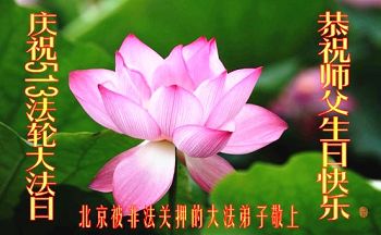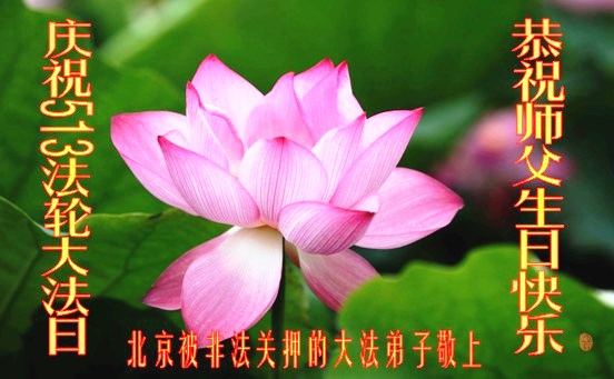北京被非法关押的大法弟子庆祝法轮大法日!恭祝师父生日快乐!