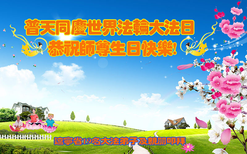 辽宁省19名大法弟子及亲朋普天同庆世界法轮大法日!恭祝师尊生日快乐!