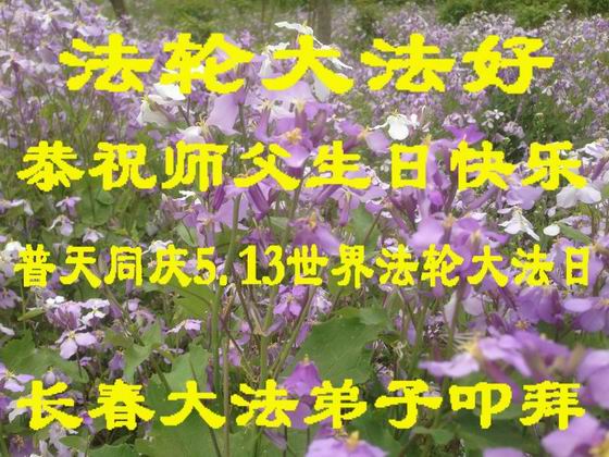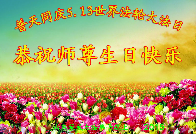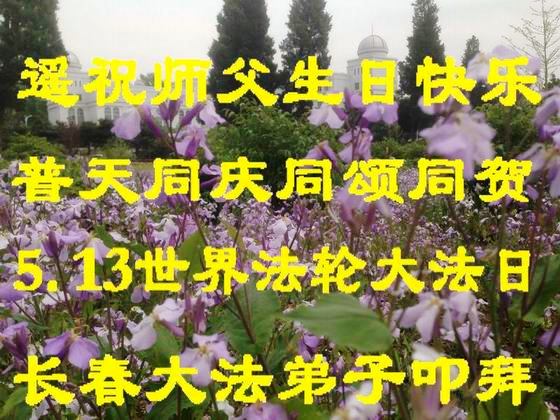 【明慧网二零一五年五月十二日】 吉林省长春大法弟子恭祝师父华诞暨5.13世界法轮大法日!